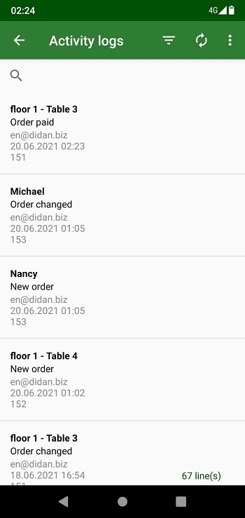 • Mit den Aktivitätsprotokollen können Sie alle auf den Bestellungen getätigten Transaktionen im Detail einsehen.