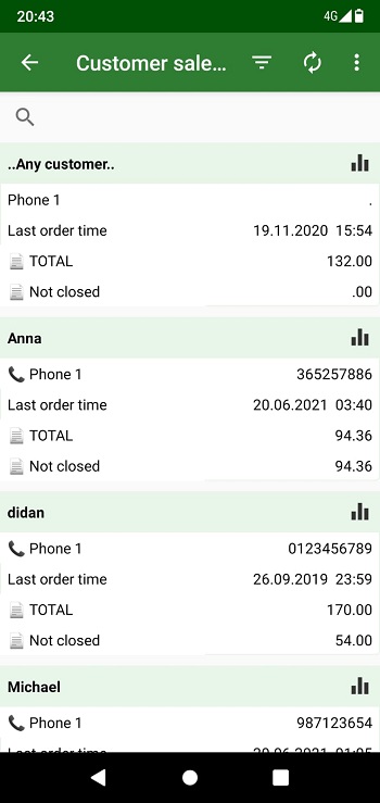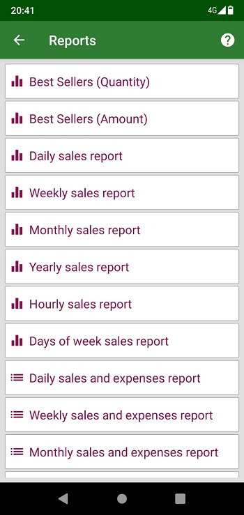 • Verkaufs- und Auftragsberichte; Produkt, Kategorie, Kunde, Lieferant, Benutzer, Gerät, Etage, Tisch, Zahlungsart, täglich, wöchentlich, monatlich, jährlich, stündlich, Wochentage usw.