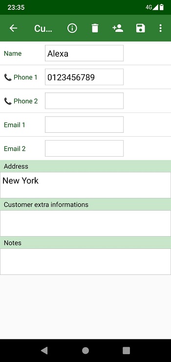 • Kunden bestehen grundsätzlich aus Name, Telefon, E-Mail und Adresse.