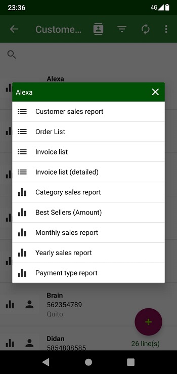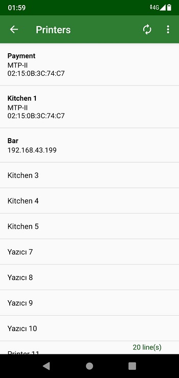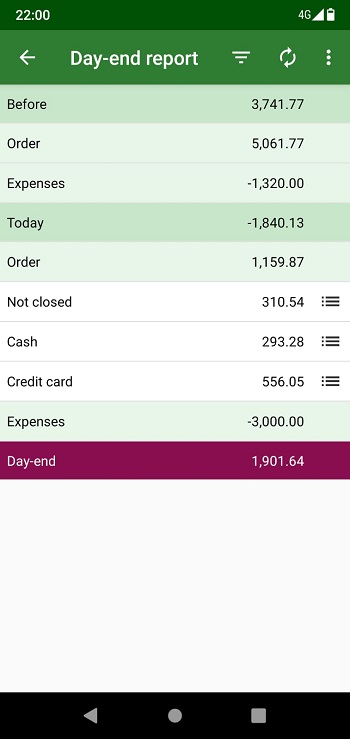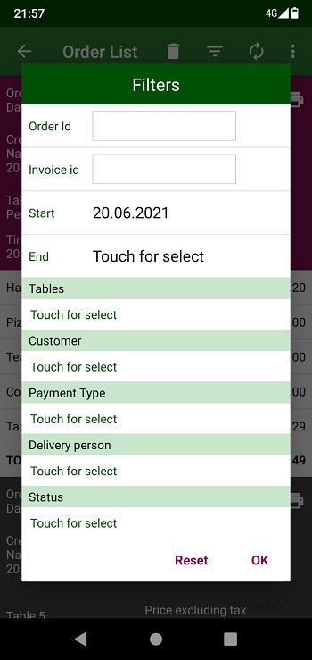 • Es ist auch möglich, einige Berichte von Android-Geräten zu drucken. Tagesabschluss, Tagesübersicht, Rechnungsliste etc.