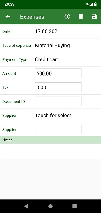 • Beim Anlegen von Spesen können Sie optional Lieferanten und Steuern angeben.