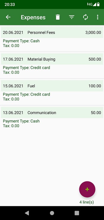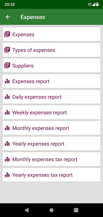 • Ausgabenberichte; Täglich, Wöchentlich, Monatlich, Jährlich, Spesenarten, Spesensteuern etc.