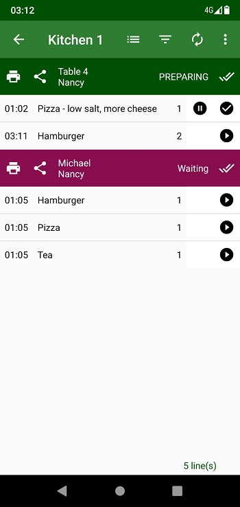 • Bestell- und Küchenbildschirme werden automatisch aktualisiert. Sie können die Transaktionen im Zusammenhang mit Bestellungen auf dem Bildschirm mit In-App-Benachrichtigungen sehen.