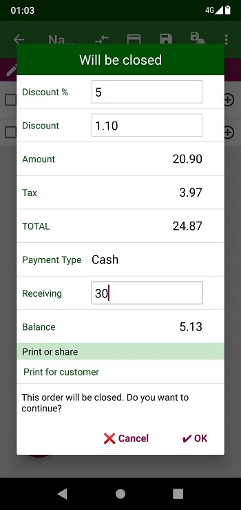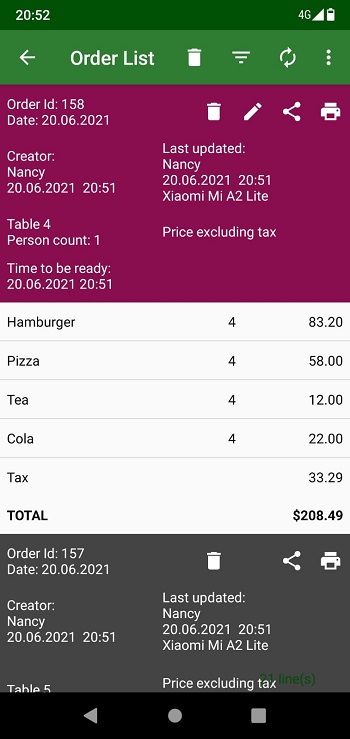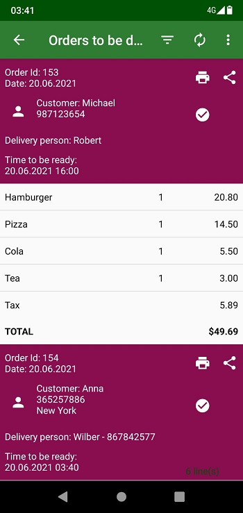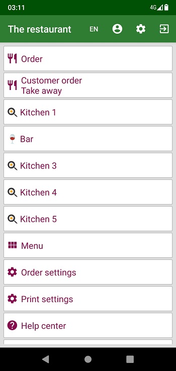 • Sie können die Bestellung für Kunden oder Küchen ausdrucken.
