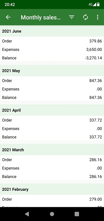 • Bei einigen Berichten können Sie auf die Zeilen in der Liste tippen, um die Details anzuzeigen.