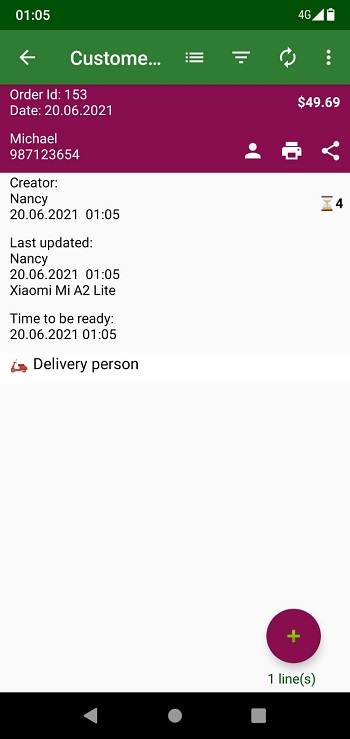 • Sie können den Status der Bestellung ändern. Vorbereiten, Fertig usw.