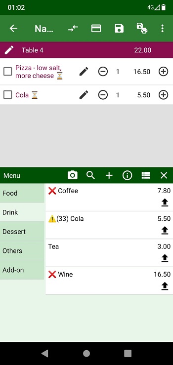 • Es kann Bestellungen für den Tisch und/oder den Kunden erstellen.