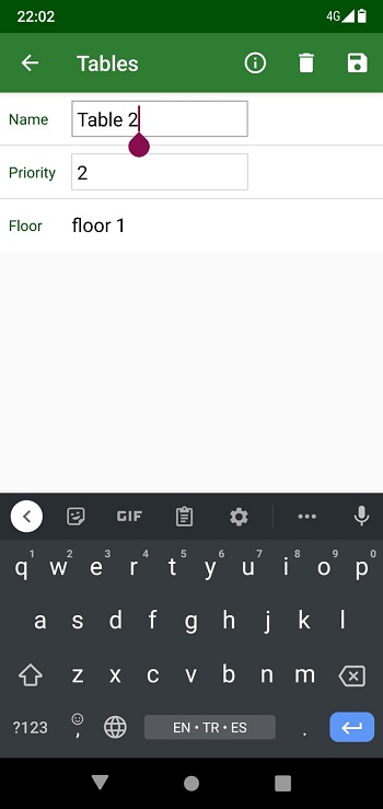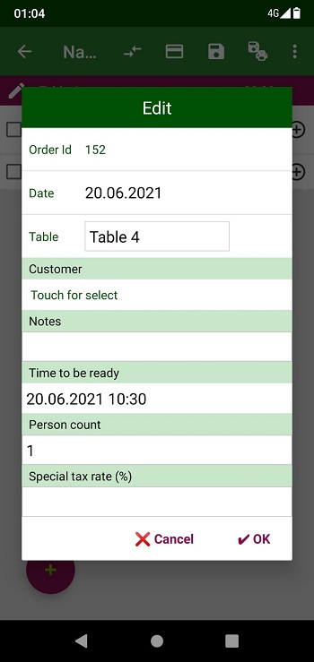• Beim Anlegen einer Bestellung für den Tisch ist es möglich, den Tisch umzubenennen oder einen Kunden auszuwählen.